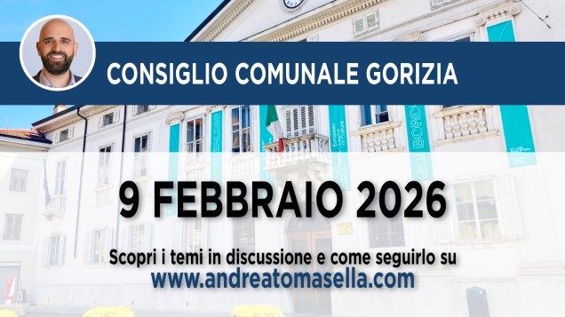 Il Consiglio comunale di Gorizia è convocato per la giornata di lunedì 9 febbraio 2026 alle ore 17.30, presso la Sala del Consiglio comunale del Comune di Gorizia.