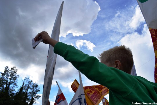 pontida-2016-foto-e-report-della-giornata25 Un giovane leghista richiama l’attenzione di Matteo Salvini
