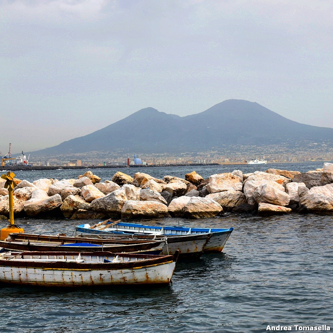 Battelle sul mare e Vesuvio sullo sfondo