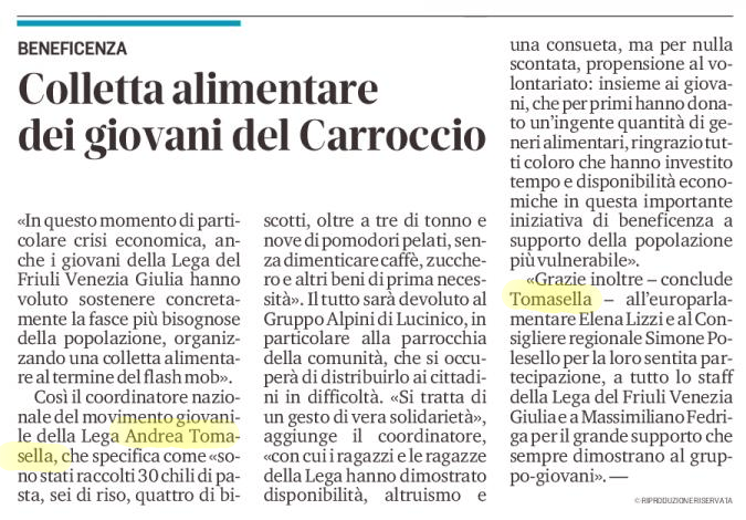 “Colletta alimentare dei giovani del Carroccio” 3/6/2020