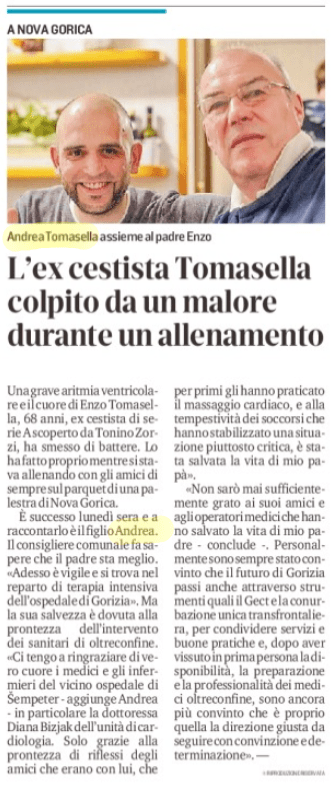 “L’ex cestista Tomasella colpito da un malore durante un allenamento” 15/9/2020