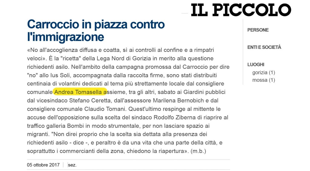 “Carroccio in piazza contro l’immigrazione” 5/10/2017