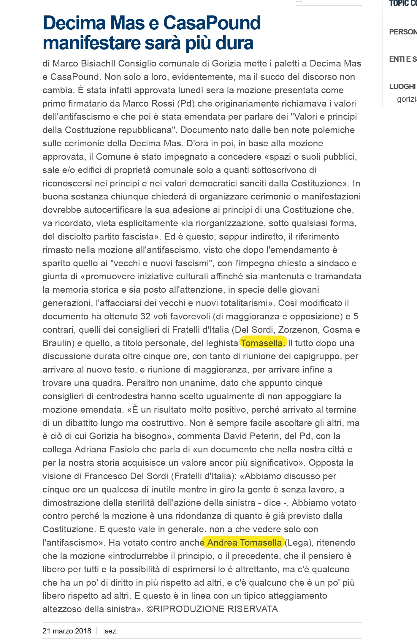 “Decima Mas e CasaPound manifestare sarà più dura” 21/03/2018