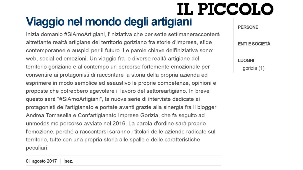 “Viaggio nel mondo degli artigiani” – 1/8/2017