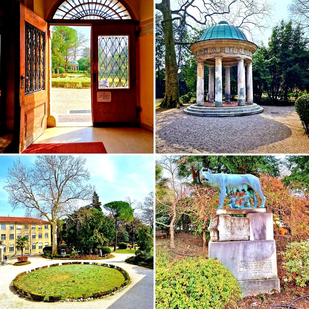 🏛️ A questo periodo risale anche una collinetta artificiale sovrastata da un belvedere, di cui oggi rimane soltanto un tempietto con colonne doriche situato nell’aiuola circolare al centro della corte d’onore. Poco distante, si trova una statua della lupa capitolina.
