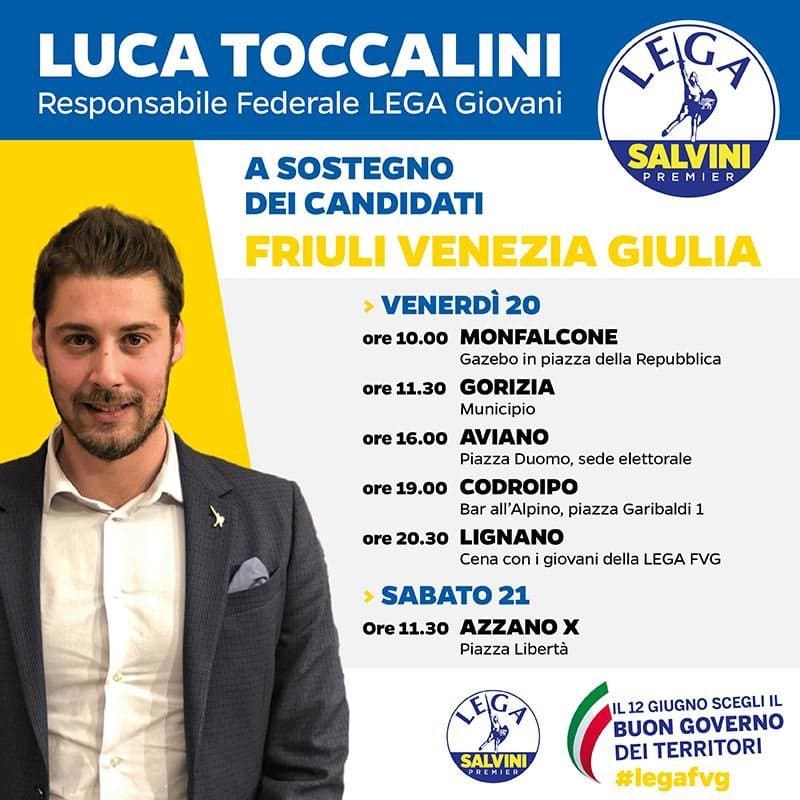 Domani il coordinatore federale della Lega Giovani, on. Luca Toccalini, tornerà a trovarci a #Gorizia 😊