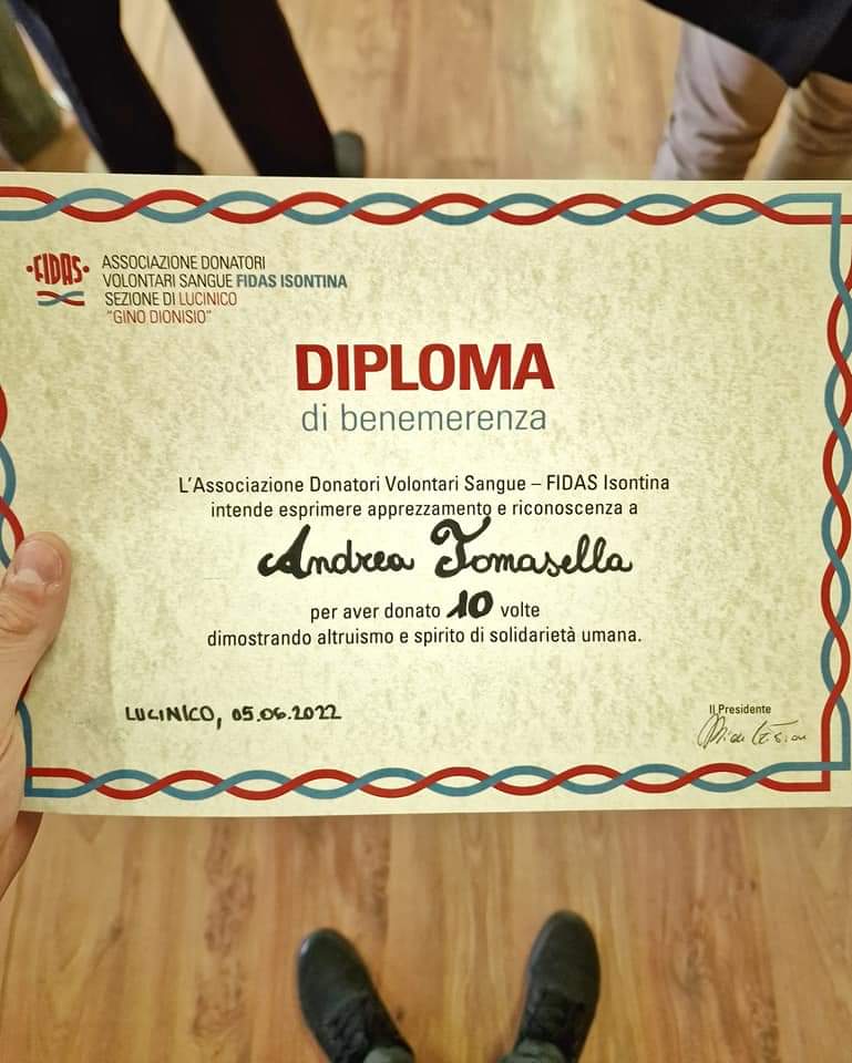 Grazie a FIDAS Isontina sezione di Lucinico per questo importante riconoscimento.