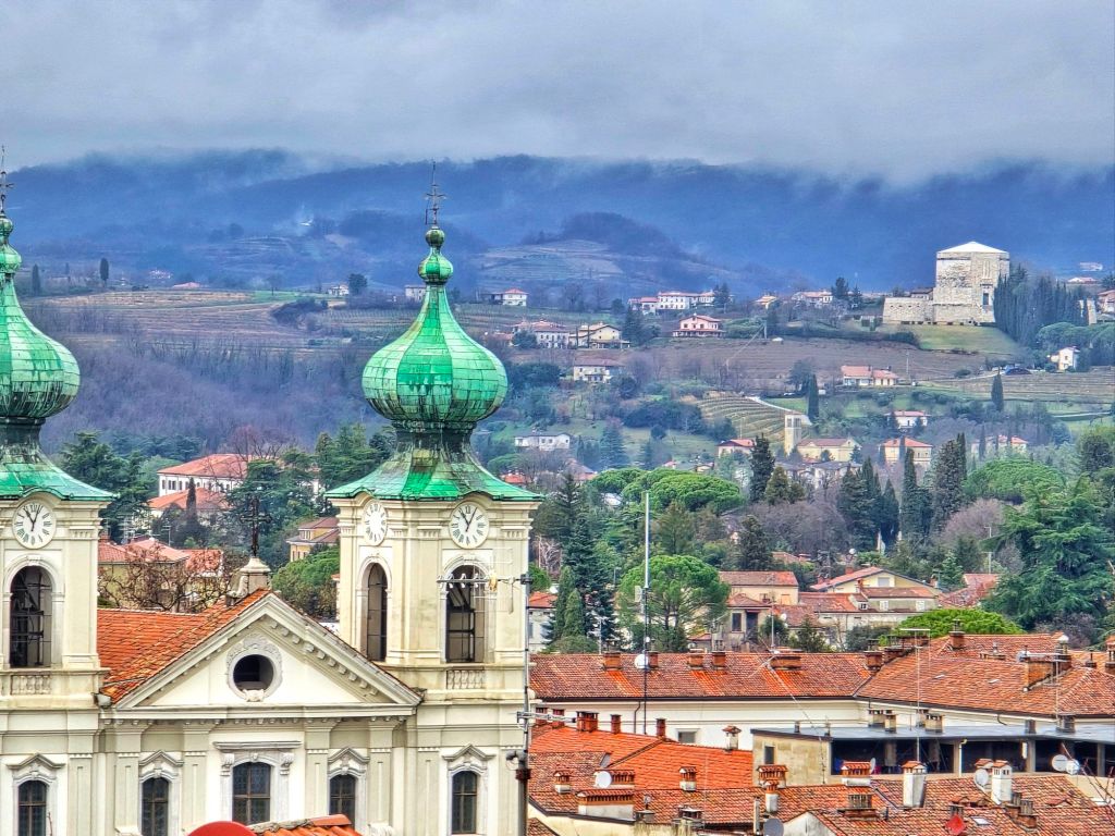 Questa mattina mi godo la vista sulla chiesa di Sant’Ignazio e sul Sacrario Militare di Oslavia, immersi in un’atmosfera nuvolosa e affascinante.