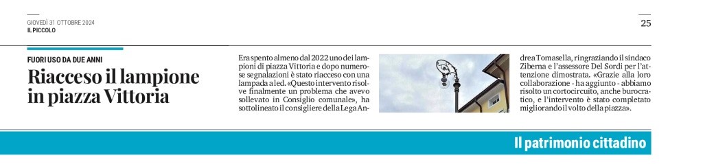 Riacceso il lampione in pizza Vittoria – 31/10/2024