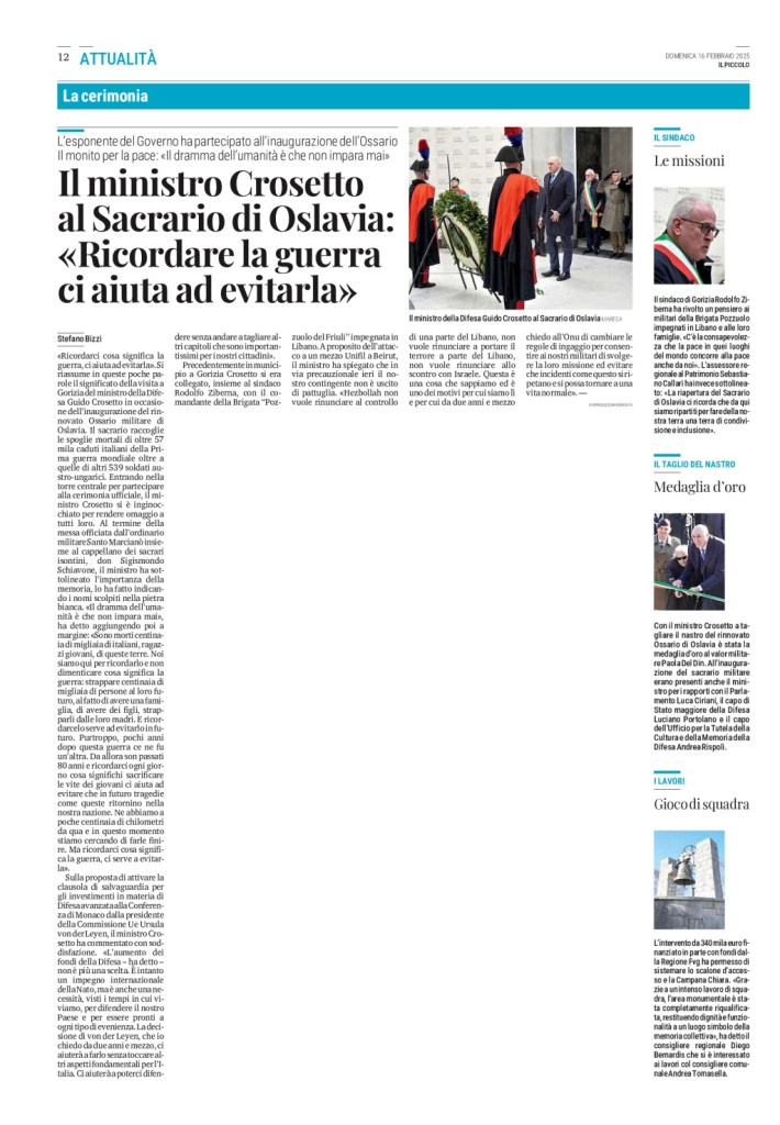 Inaugurazione del Sacrario di Oslavia. Gioco di squadra per la Campana Chiara 16/02/2025