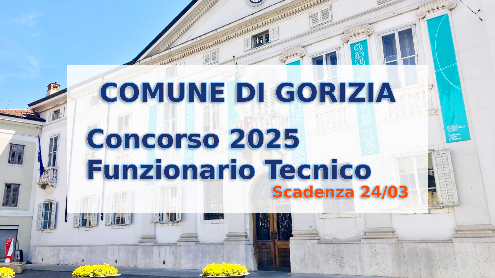 Il Comune di Gorizia ha indetto un concorso per l’assunzione di un Funzionario Tecnico (categoria D), a tempo pieno e indeterminato. Domande fino al 24 marzo 2025 alle ore 12:00