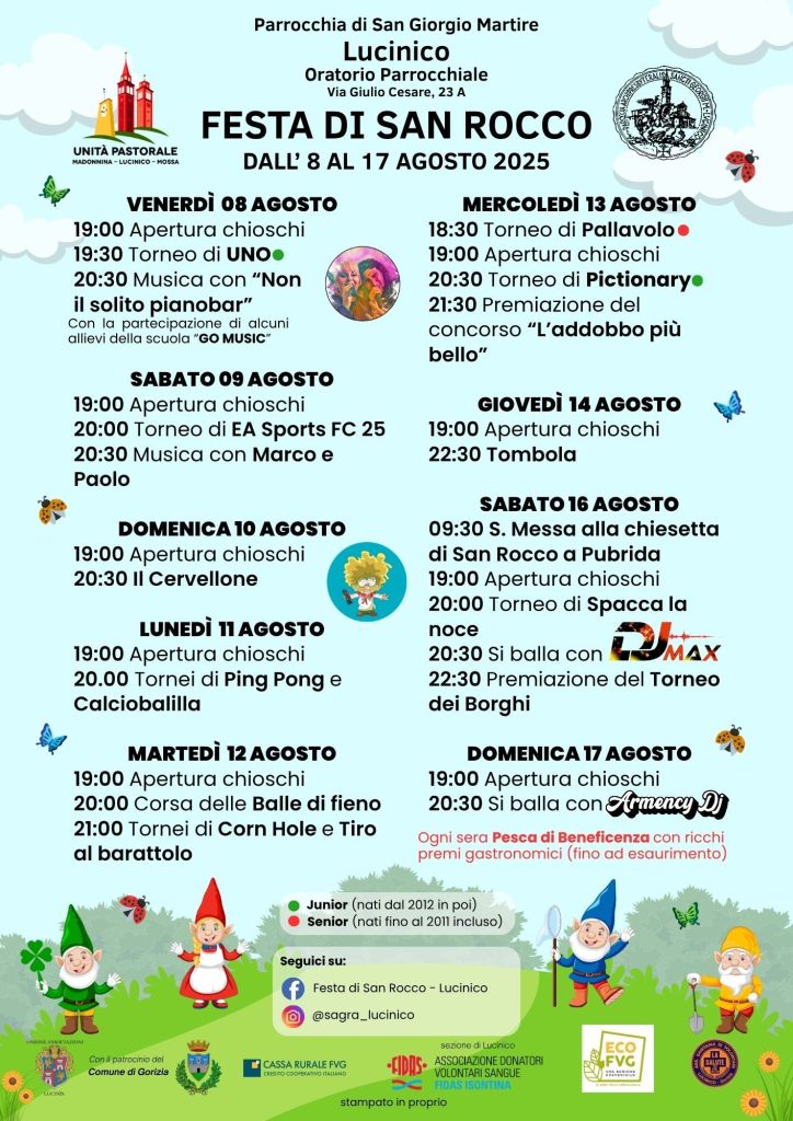 Segui le novità sulla pagina Facebook Festa di San Rocco – Lucinico e su Instagram @sagra_lucinico.