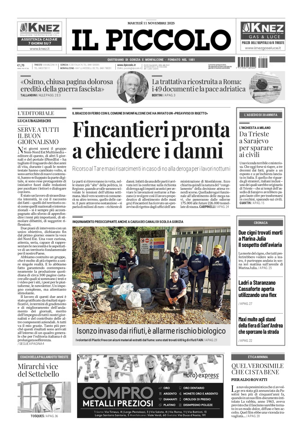 Raccolti 600 kg di rifiuti sulle rive dell’Isonzo – 11 11 2025