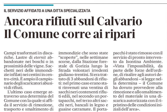 Certo di un cortese cenno di riscontro, resto a Sua disposizione con la volontà e l’obiettivo di scongiurare ciò che Gorizia, e il nostro monte Calvario, non merita.