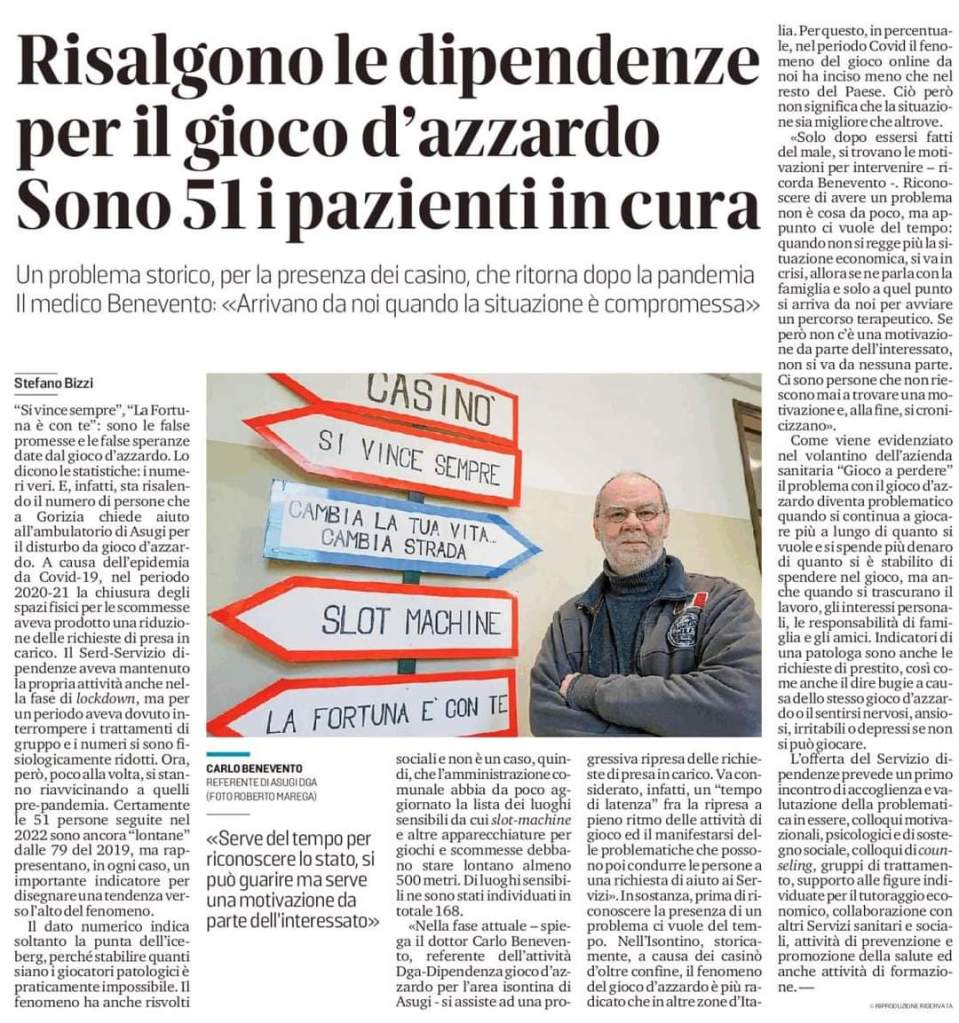 Sono soddisfatto di questo importante appuntamento che ci ricorda come sia fondamentale tenere alta l’attenzione sul tema dell’azzardopatia e sulla necessità di prevenire il diffondersi di questa malattia, oltreché quanto siano necessari la vicinanza e il sostegno a chi soffre di questa terribile dipendenza.