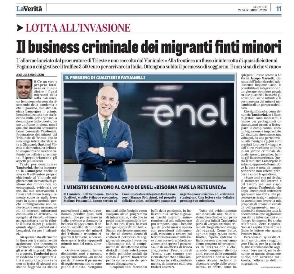 ✅ Approvata la delibera di Giunta adottata in via di urgenza per rimpinguare il fondo per l’accoglienza di minori stranieri non accompagnati con ulteriori 930.000 euro, portando così il capitolo di spesa per il Comune di Gorizia a più di 2 milioni di euro. Queste risorse, anche se poi verranno restituite dallo Stato, sono un insulto alla situazione di emergenza che molti italiani e immigrati regolari vivono anche a causa del Covid. Per questo ho votato contrariamente alla delibera poiché, assieme ad altri esponenti della maggioranza, abbiamo ritenuto di mandare un segnale al Governo centrale sulla necessità urgente di rivedere le politiche in materia di immigrazione. Ogni altra ricostruzione a proposito di tale espressione di voto è pura e semplice fantasticheria. Comunque, se avete tempo, vi invito a leggere l’importante testimonianza del procuratore dei minori del Tribunale di Trieste, Gianpaolo Sarti, pubblicata recentemente su Il Piccolo e La Verità e riguardante il business che si cela dietro i flussi migratori della rotta balcanica.