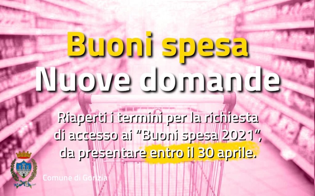 Le domande di accesso ai buoni spesa di solidarietà alimentare potranno essere presentate, a partire dall’ 8 marzo 2021 e fino al 30 aprile 2021, compilando l’apposito modulo disponibile sul sito del Comune di Gorizia.