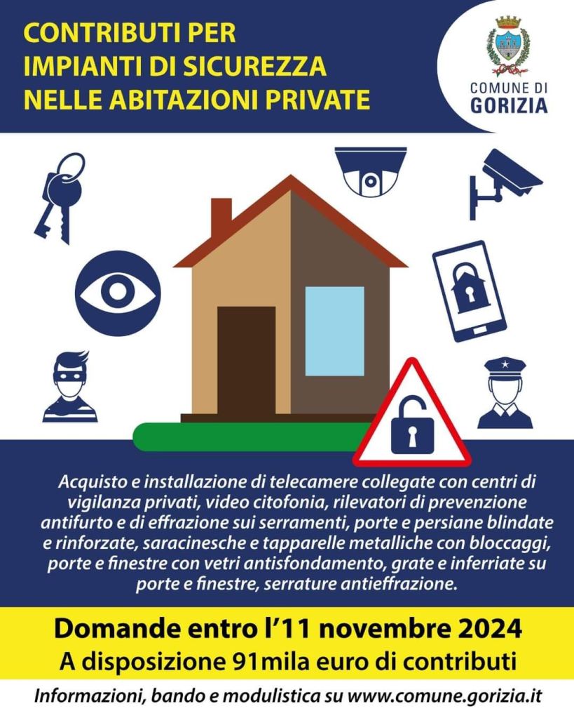 Il Comune di Gorizia ha approvato il bando per la concessione di contributi per l’acquisto e l’installazione di sistemi di sicurezza nelle case di abitazione, nelle parti comuni dei condomini e in altre tipologie di edifici.