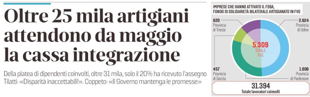 In attesa della cassa integrazione da maggio, in alcuni casi anche da aprile. È questa l’inaccettabile situazione in cui si trovano circa 25 mila dipendenti di imprese artigiane del Friuli Venezia Giulia, costretti a fare letteralmente i conti con le promesse mai mantenute da PD e Cinque Stelle, evidentemente più occupati a pensare allo Ius Soli e a cancellare i decreti sicurezza. Come se i lavoratori non fossero già abbastanza in difficoltà, tra le priorità del Governo anche lo smantellamento di Quota 100 e il ritorno alla Legge Fornero. È così che PD e M5S pensano di rilanciare il Paese in questa fase così complessa?