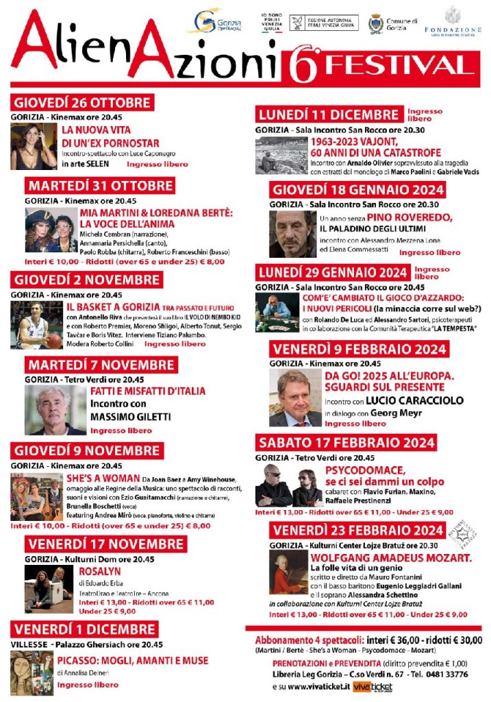 Giovedì 11, alle 17:30 al Kulturni Center Bratuz, è in programma il Concerto per Rodolfo Lipizer, omaggio musicale nel 50° anniversario della scomparsa. Il libro delle 18:03 vedrà la presentazione di “Controstoria dell’alpinismo”, mentre alle 20:00, presso il Palazzo del Cinema di Piazza Vittoria, sarà proiettato “Lunatic” di Igor Šterk.