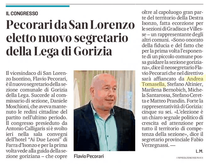 Oggi sono stato eletto come componente del direttivo sezionale della Lega – Salvini Premier Gorizia assieme, fra gli altri, a due giovani in gamba come Matteo Prandin e Michela Santarossa.