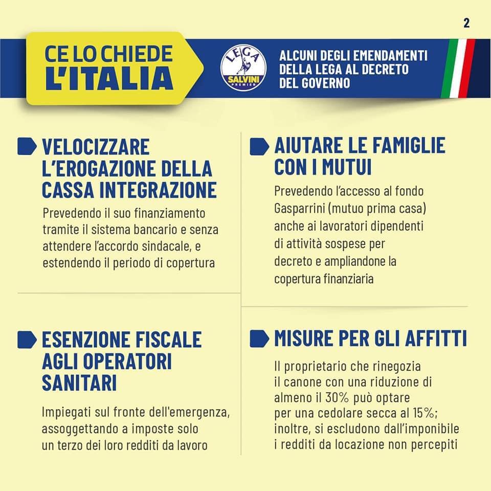 Ecco alcuni degli emendamenti della Lega al decreto del Governo a sostegno delle famiglie, dei Comuni, delle imprese: