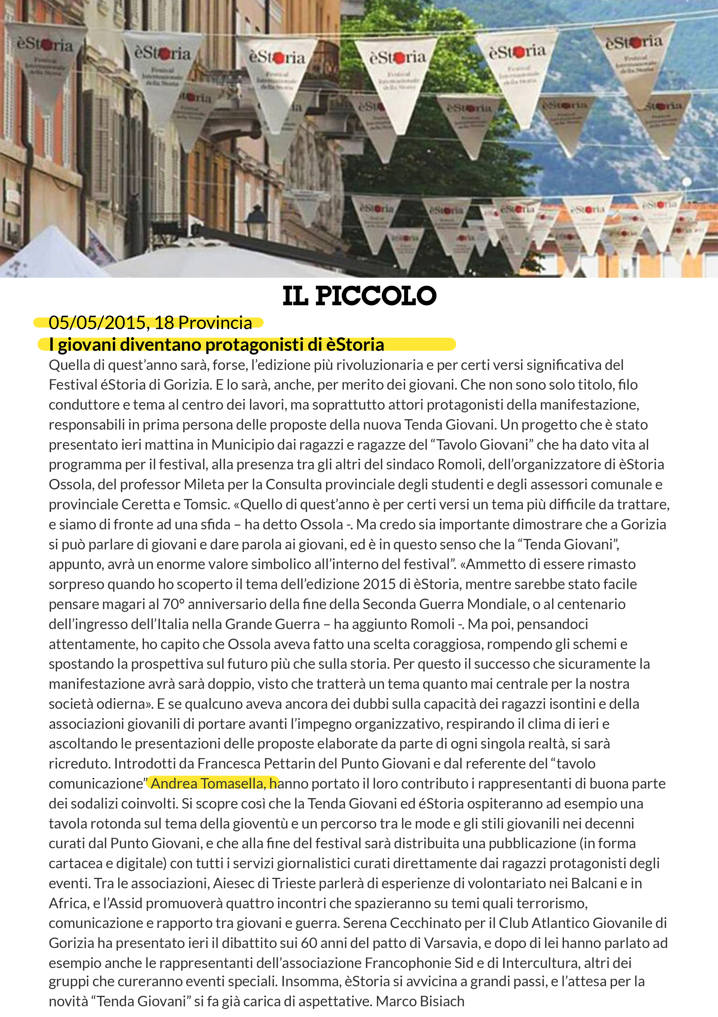 “I giovani diventano protagonisti di èStoria” – 05/05/2015