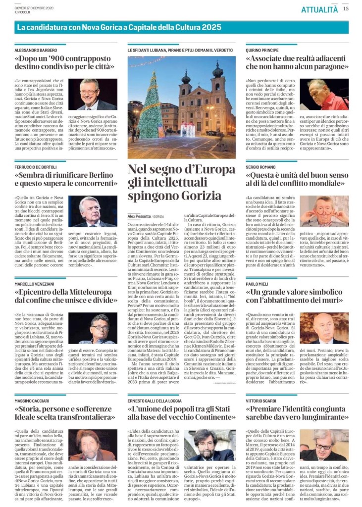 Leggere questa pagina de Il Piccolo quest’oggi mi ha emozionato ❤ Un’approfondita analisi con opinioni di personaggi illustri e intellettuali che vedono nella città di Gorizia, anzi, nella conurbazione transfrontaliera di Gorizia e Nova Gorica, quell’unicum europeo che ben presto potrebbe divenire un modello di integrazione a cui ambire in tutta Europa.