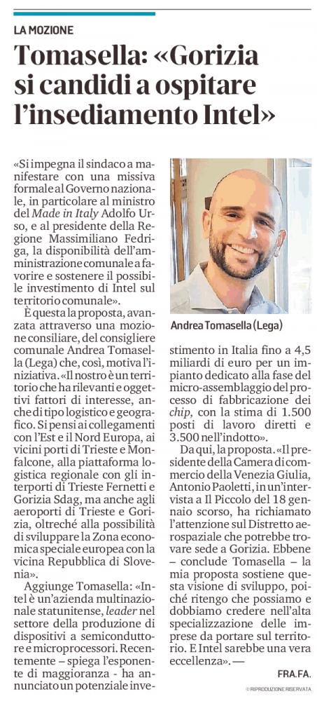 6. Mozione “Il Sindaco e la Giunta manifestino al Governo nazionale e al Presidente della Regione la disponibilità dell’Amministrazione comunale a favorire e sostenere l’insediamento di Intel sul territorio goriziano” – primo firmatario cons. Tomasella.