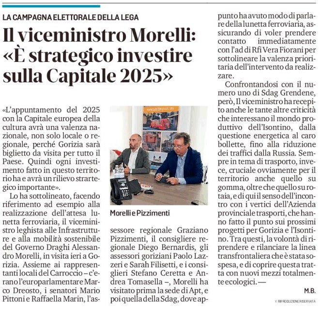 L’apertura del Ministro Matteo Salvini è un segnale positivo che conferma l’attenzione costante verso Gorizia. Questo ci incoraggia nel nostro impegno per far crescere e sviluppare la nostra città.