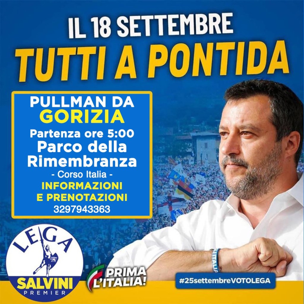 Vi aspetto domani mattina in Corso Verdi a Gorizia! 😊 Oltre che per i tesseramenti e le prenotazioni bus per #Pontida, il gazebo sarà occasione per incontrarci e confrontarci in vista delle elezioni del prossimo 25 settembre! 🗳️🇮🇹#25settembrevotoLega