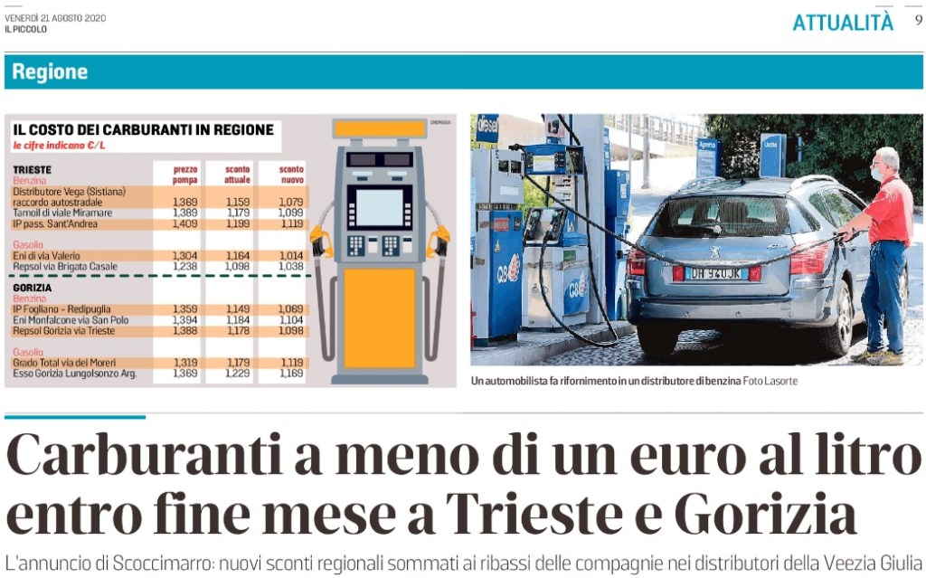 Con l’aumento degli sconti su gasolio e benzina sarà finalmente possibile fare rifornimento in Italia ad un prezzo tanto conveniente quanto in Slovenia; la nuova scontistica resterà in vigore almeno fino a fine settembre e nel corso di questo mese se ne valuterà l’efficacia. Si tratta sicuramente di un primo importante risultato, che però non mette in discussione un percorso più lungo, il cui obiettivo finale è una complessiva armonizzazione dell’economia di confine che consenta a tutte le attività economiche della fascia confinaria di godere delle stesse condizioni tariffarie, fiscali e burocratiche vantaggiose praticate in Slovenia. Tale armonizzazione è un obiettivo fondamentale per la nostra economia ed è raggiungibile soltanto attraverso un impegno trasversale di tutte le forze politiche, come dimostrato con l’approvazione, all’unanimità, di alcune mozioni consiliari sulla tematica in diversi Comuni del goriziano. Ringrazio il presidente Massimiliano Fedriga, l’assessore regionale all’Energia Fabio Scoccimarro e il consigliere regionale Diego Bernardis per l’attenzione rivolta al nostro territorio e alla tematica del pendolarismo del pieno oltreconfine.